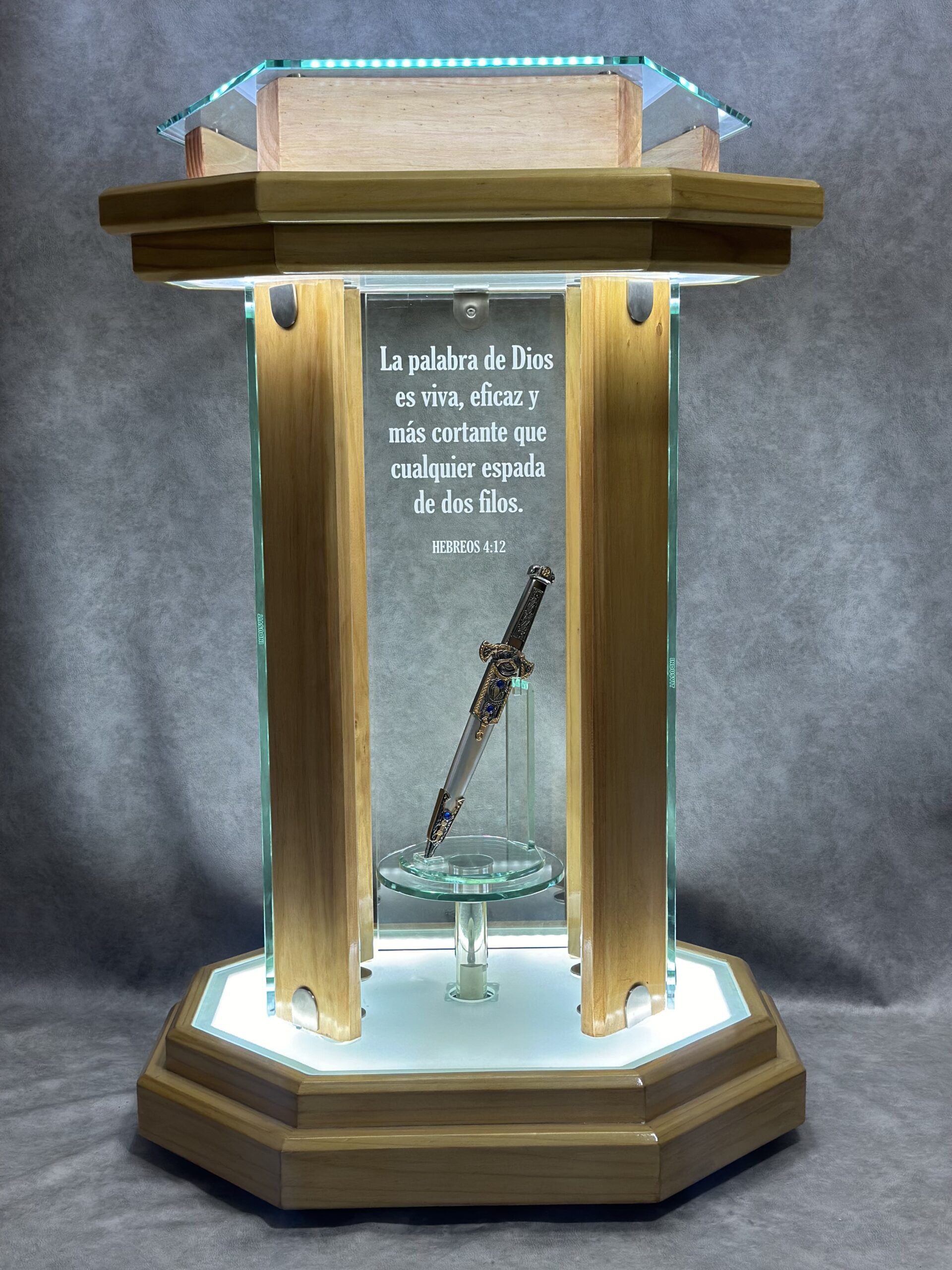 23 noviembre, 2024En el año 2024 Mar de Cristal lanza al mercado uno de los púlpitos más innovadores de su historia, el Púlpito ELYON; elaborado en madera y cristal, este diseño ofrece un concepto completamente diferente a todos los modelos diseñados en estos 25 años de trayectoria, ya que es un mueble que se puede renovar sin ninguna dificultad y con poco presupuesto, personalizando los eventos y hasta los mensajes que se lleguen a predicar en los templos. Es un púlpito versátil que se puede armar con las instrucciones que la compañía aporta y de ese modo ahorran significativamente en el costo de instalación.