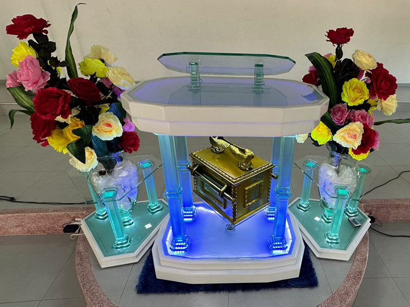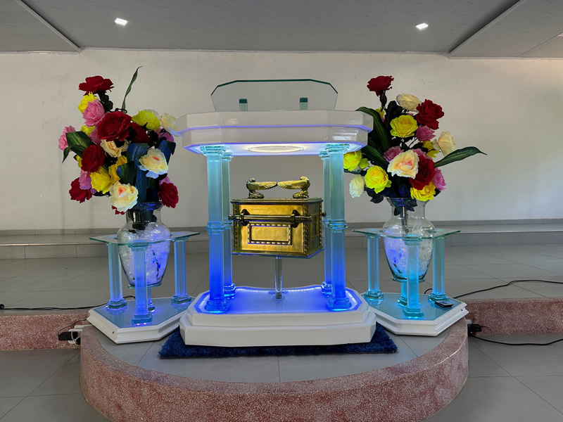 25 octubre, 2023El año 2023 lo terminamos por lo alto, con otro diseño impresionante; se trata de la nueva versión de púlpito llamado Pacto Eterno, instalado por primera vez en la IPUC en la ciudad de Maicao, sede once. El ministro del Señor Rafael Niño ordenó este diseño a Mar de Cristal, aún sin saber cómo lo definiríamos, es la confianza que tienen nuestros clientes apoyados en la trayectoria de más de 25 años de carrera y en la honestidad y el conocimiento del don de Dios en nuestras manos.