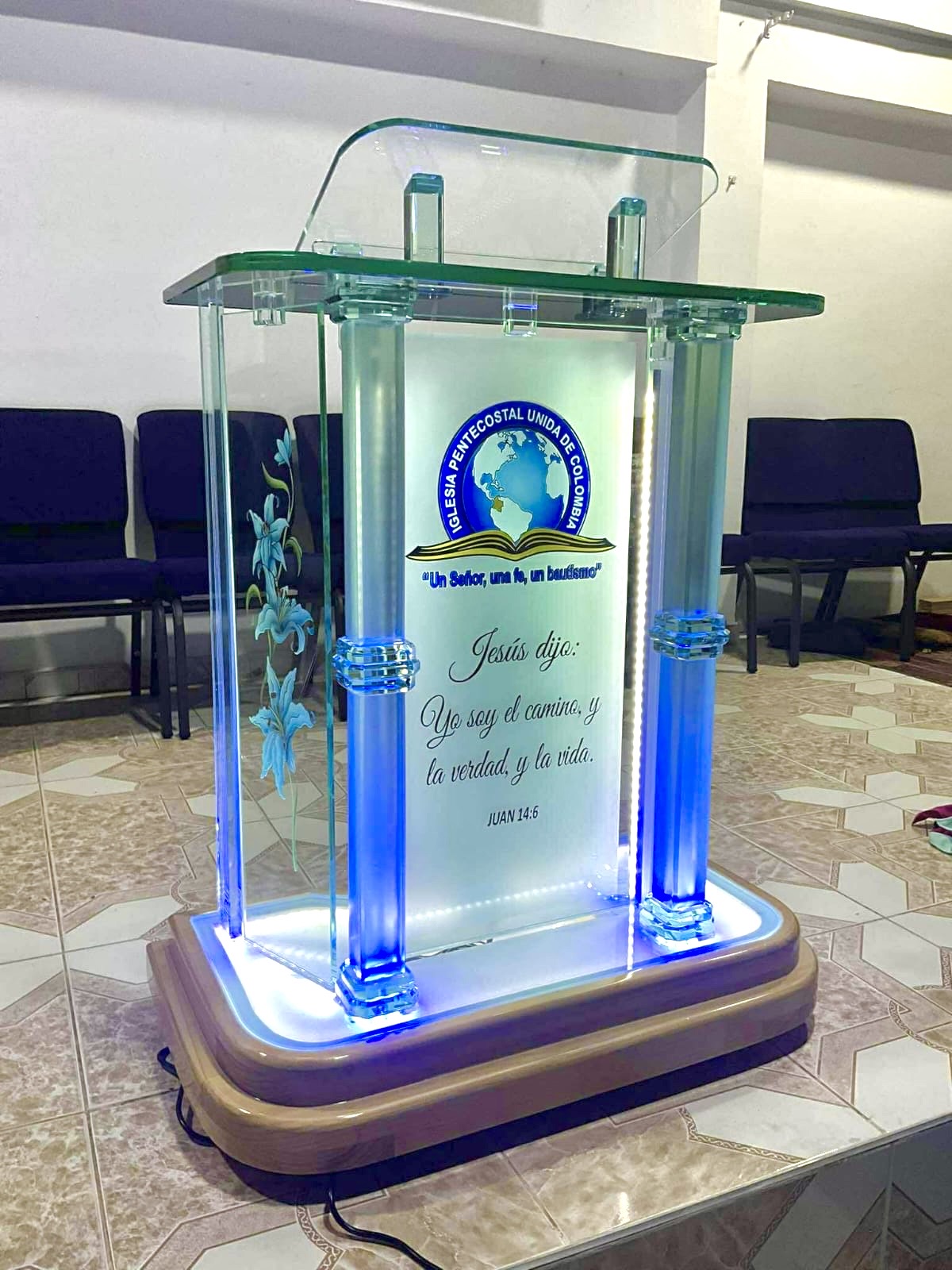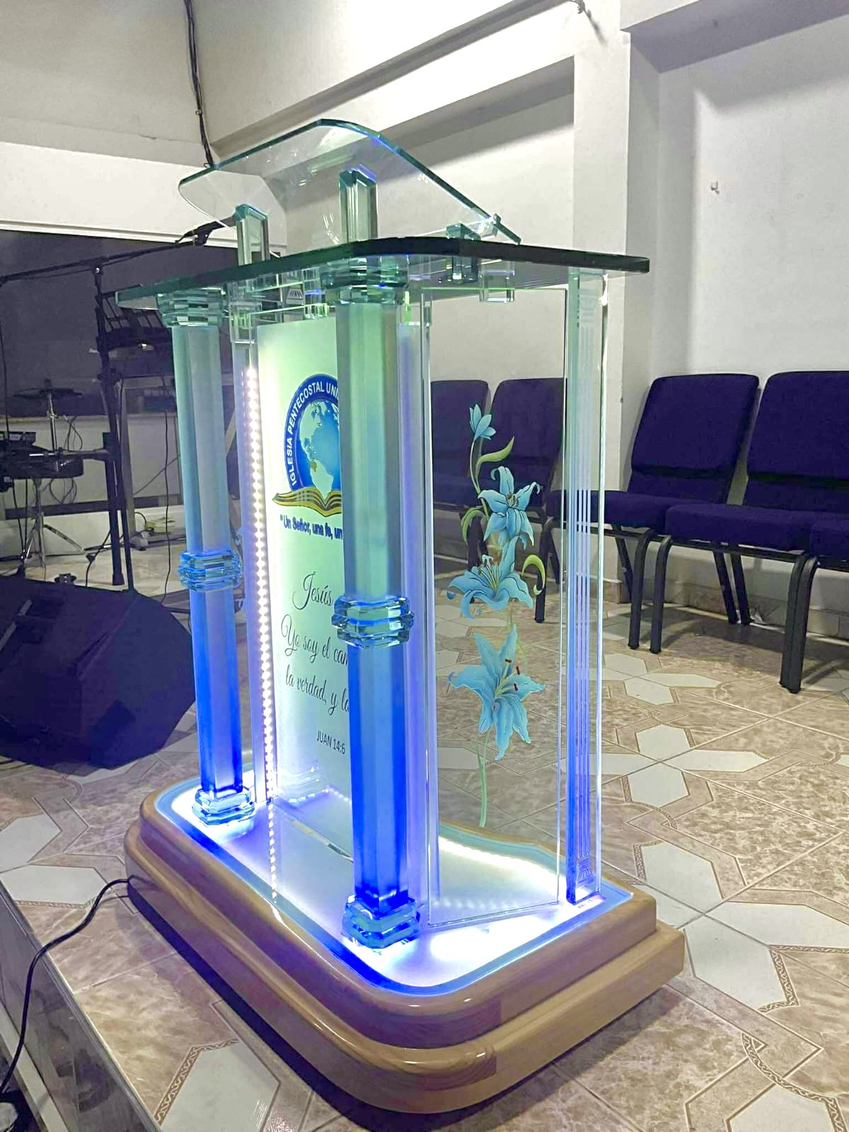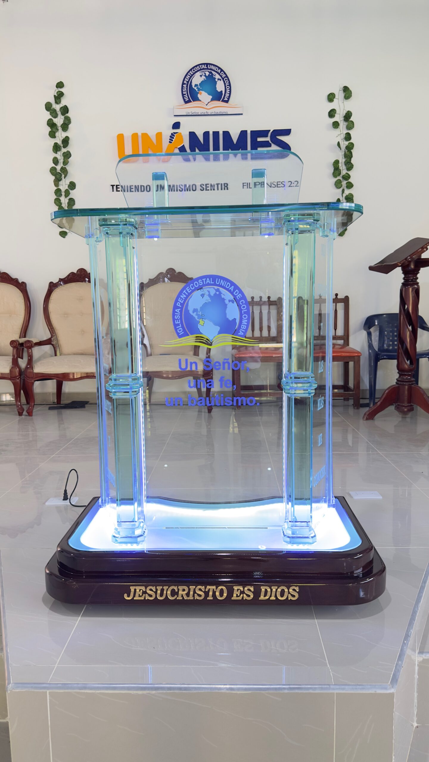 El púlpito Moriah llega en respuesta a la necesidad de tener un púlpito de belleza y detalles de los grandes púlpitos, que ya todos conocen que han hecho grande a Mar de Cristal, pero en un tamaño más reducido y con un estilo sobrio.