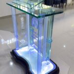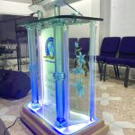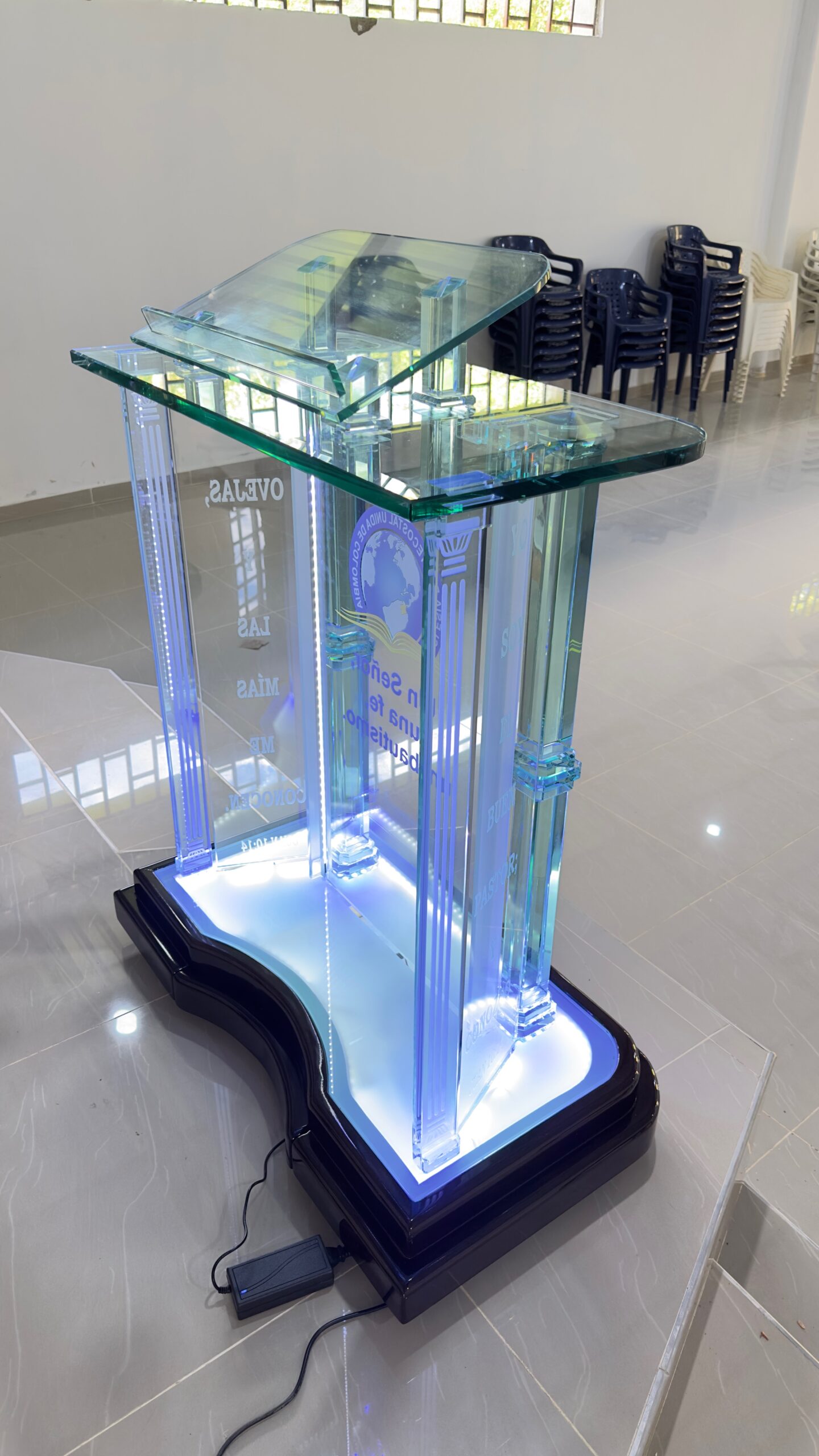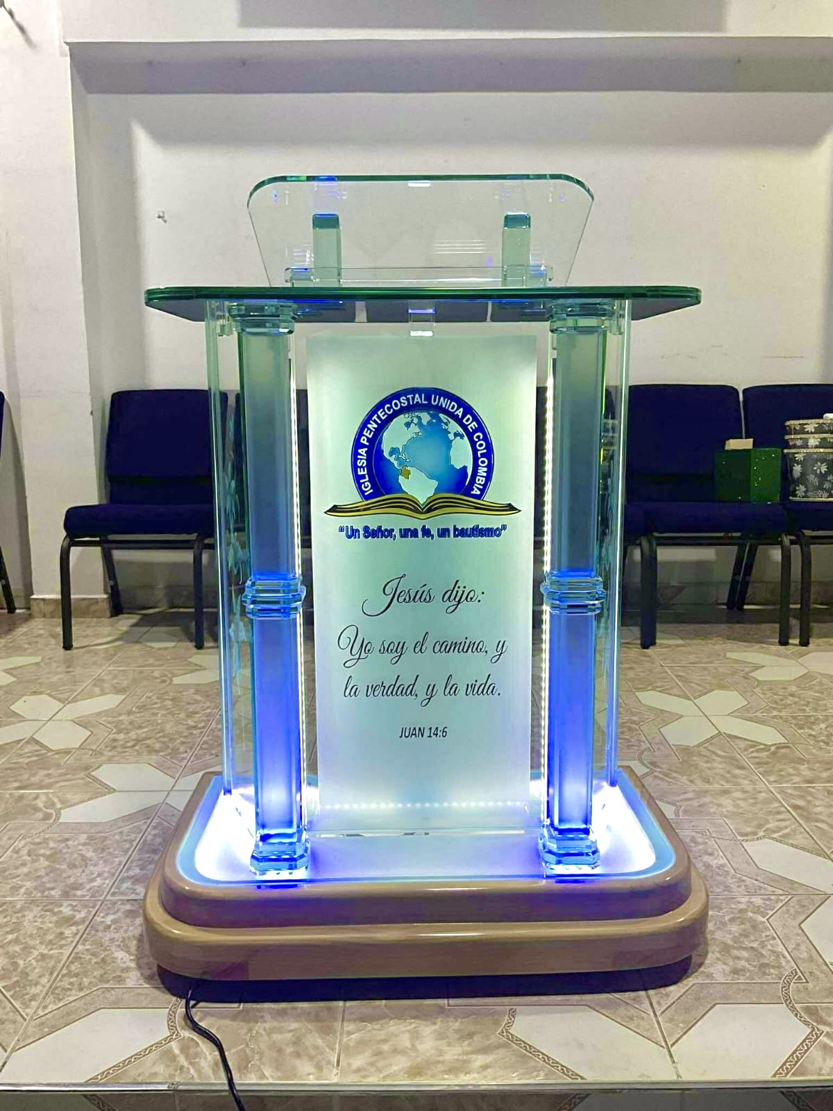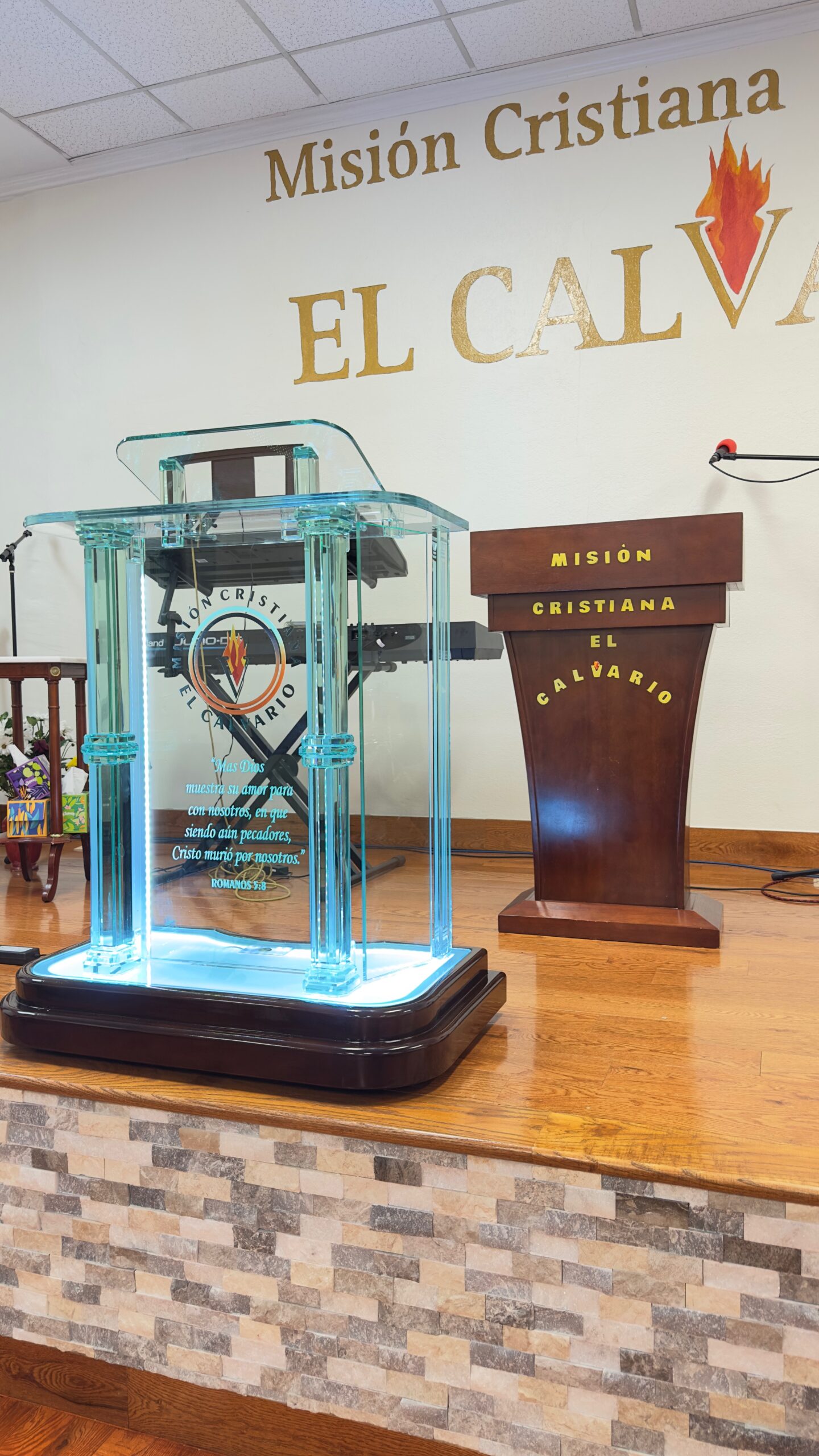 El púlpito Moriah llega en respuesta a la necesidad de tener un púlpito de belleza y detalles de los grandes púlpitos, que ya todos conocen que han hecho grande a Mar de Cristal, pero en un tamaño más reducido y con un estilo sobrio.